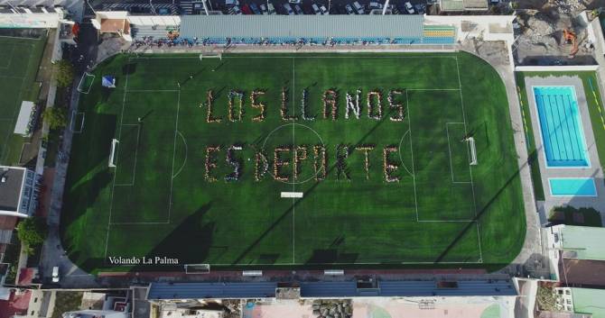 Desde el aire, “Los Llanos es Deporte” dejaba constancia del importante papel que juegan las diferentes modalidades deportivas en un municipio en el que se ofertan un total de 27 disciplinas que practican en torno a 1.200 niños y jóvenes. En la tarde de este sábado, 23 de diciembre, los locales inaugurarán el nuevo césped del estadio en un partido de fútbol que enfrentará a la Unión Deportiva Los Llanos con la Unión Deportiva San Fernando.