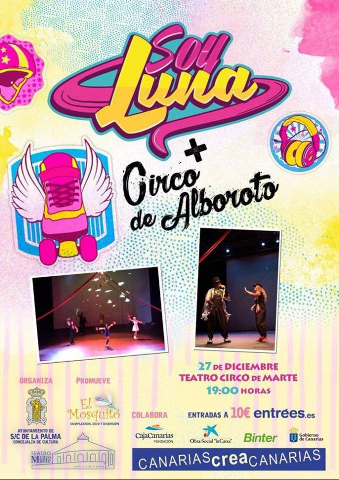 El Teatro Circo de Marte de Santa Cruz de La Palma acoge este miércoles, a partir de las 19:00 horas, el espectáculo Soy Luna y El Circo Alboroto, una propuesta de El Mosquito Producciones que invita a disfrutar de diferentes historias jalonadas de magia, música y risas. El precio de las localidades es de 10 euros para todo el aforo.