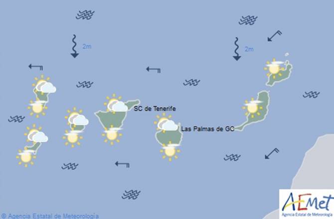 La previsión meteorológica para este sábado apunta la existencia, en el norte y este de la isla, de cielos nubosos con predominio de la nubosidad de tipo media y alta, sin descartar alguna lluvia débil durante las primeras horas.