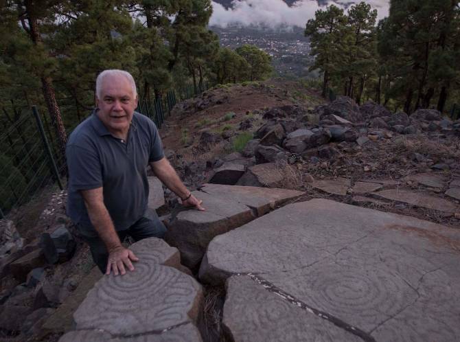 La parte final del trabajo del que también es profesor de la UNED de La Palma y, entre otros cargos honoríficos, miembro del Instituto de Estudios Canarios y del Comité Científico de la Reserva de la Biosfera de La Palma, se ha dedicado al inventario de 435 yacimientos rupestres que aún se conservan en la isla.