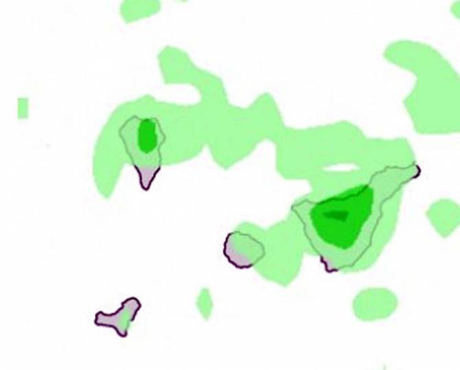 En medianías podrían ser persistentes esas precipitaciones, mientras que en el resto de zonas habrá intervalos nubosos con baja probabilidad de lluvias débiles y ocasionales.