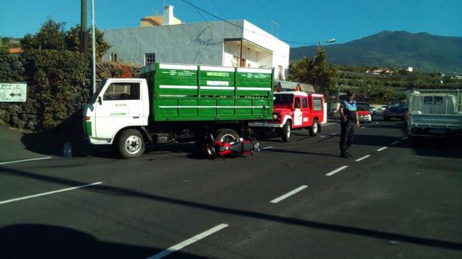 Un hombre ha resultado herido en la tarde de hoy tras chocar con la moto en la que circulaba contra un camión en el barrio de Las Martelas, en Los Llanos de Aridane.
