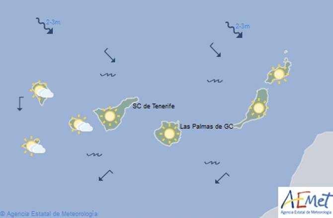 Viento flojo con predominio de las brisas, aumentando por la tarde a nordeste moderado, siendo más intenso en costas sudeste y noroeste.