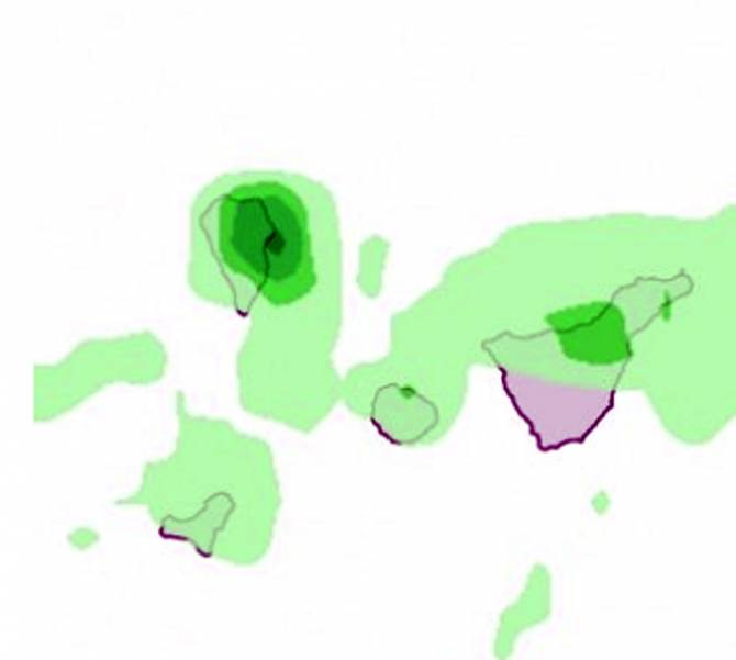 La previsión meteorológica para este domingo en La Palma apunta que en las vertientes norte habrá cielo nuboso con probables lluvias débiles a partir del mediodía; en el resto de zonas orientadas al sur, intervalos nubosos sin descartar alguna lluvia débil dispersa por la tarde.