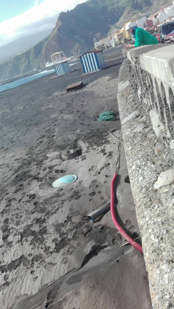 Los fuertes vientos y la subida de la marea ha provocado durante la noche de este martes al miércoles distintos daños en los servicios que se prensa en la nueva playa de Santa Cruz de La Palma.