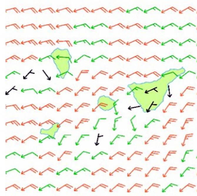 Viento del nordeste, con algunos intervalos de fuerte en costas sureste y noroeste, y en El Paso. En medianías y zonas altas, viento del este.