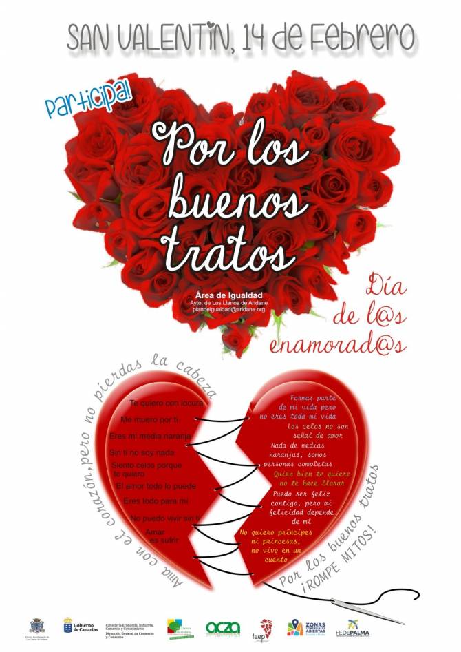 La campaña del Día de los Enamorados tiene nombre propio en Los Llanos de Aridane. Desde hoy y hasta el próximo miércoles 14 de febrero, la concejalía de Igualdad con la colaboración de la Zona Comercial Abierta de Los Llanos de Aridane (ZCA) y la Asociación de Comerciantes Zona Abierta (AZCA) impulsan un proyecto comercial y de sensibilización social bajo el lema Por los buenos tratos ¡Rompe Mitos!