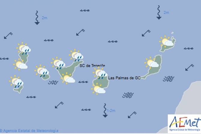 La previsión meteorológica para este domingo en La Palma apuntan a la existencia, en el norte y nordeste de la isla, de cielo nuboso con probables lluvias débiles y ocasionales, algo más intensas en medianías.