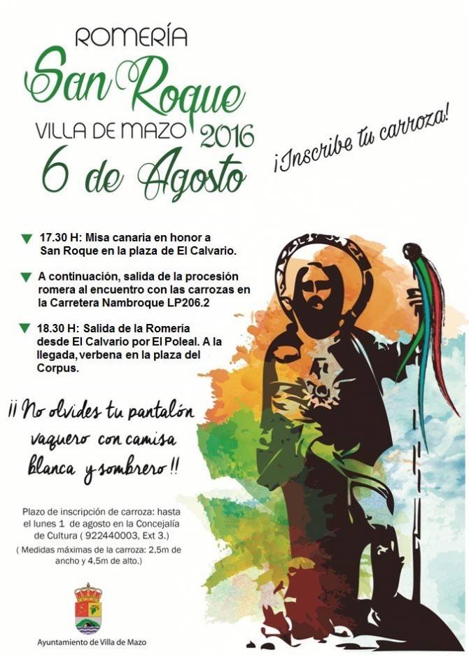 El Ayuntamiento de Villa de Mazo ha abierto el plazo de inscripción de carrozas para participar en la Romería de San Roque, que tendrá lugar el próximo 6 de agosto.