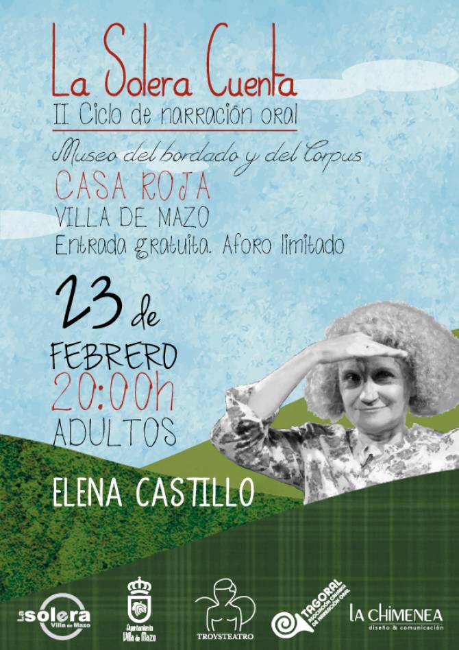 Elena Castillo tiene una larga trayectoria vinculada a la narración oral, el clown, el cabaret y el teatro de la provocación. Desde 1995 ha participado en festivales celebrados en Agüimes, Los Silos, Madrid y La Habana, además de varias ediciones de La Noche de los Cuentos, de La Laguna, y Verano de Cuento, en El Sauzal. Aunque empezó narrando cuentos literarios, ha ido incorporando a sus funciones vivencias personales y anécdotas en las que el humor tiene un gran protagonismo