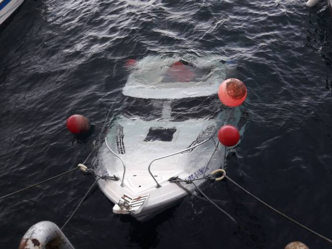 El barco, de poco menos de seis metros, resiste gracias a los amarres, por lo que no se ha hundido completamente.