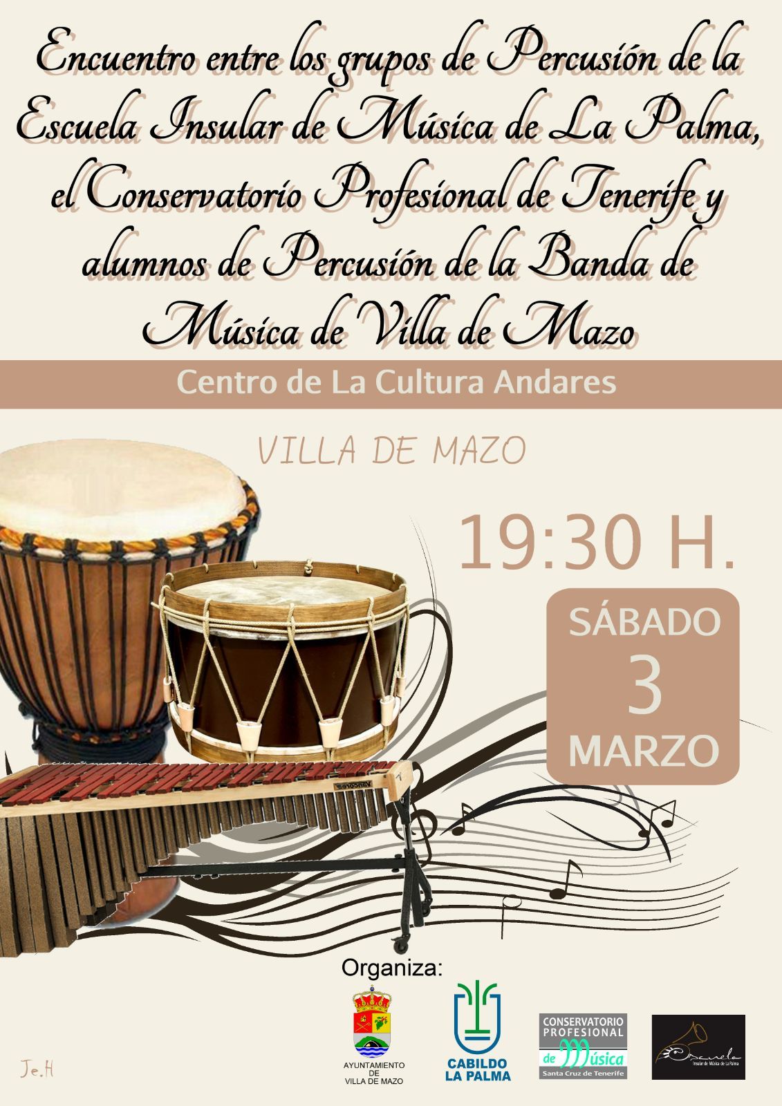 La Escuela Insular de Música de La Palma ha programado este fin de semana un encuentro entre alumnado y profesorado de percusión del Conservatorio Profesional de Santa Cruz de Tenerife, de la Banda de Música Villa de Mazo y de la propia Escuela Insular de Música de La Palma, así como su participación en una sesión del programa de formación Programas avanzados para alumnado de perfil profesional.