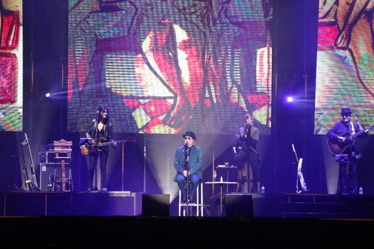 El intérprete volvió a tomar su lugar al centro del escenario y con su guitarra acústica interpretó dos horas y media de repertorio, con aportaciones del inseparable Pancho Varona y una magnífica corista, Mara Barrios.
