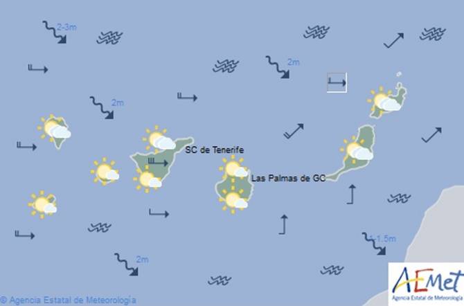 Viento de componente oeste flojo a moderado, más intenso en medianías y zonas altas, y con brisas en costas.