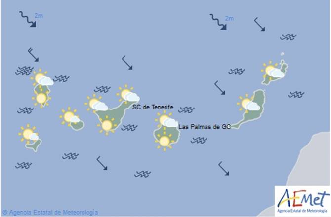 La previsión meteorológica para este miércoles en La Palma apunta a la existencia de cielos poco nubosos o despejados, con intervalos nubosos durante la mañana en el norte y oeste, y con probables nubes de evolución en el este por la tarde.
