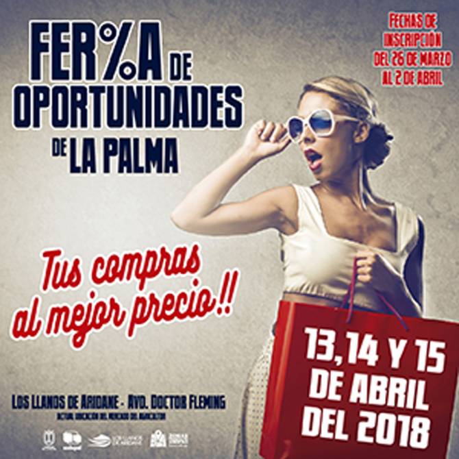 Más de una veintena de comercios de la isla participarán a partir de este viernes y durante todo el fin de semana en la Feria de Oportunidades de La Palma que organiza la Consejería de Promoción Económica y Comercio del Cabildo Insular. La feria estará ubicada en la céntrica avenida Doctor Fleming de Los Llanos de Aridane y la inauguración oficial se celebrará mañana viernes a partir de las 12:00 horas.