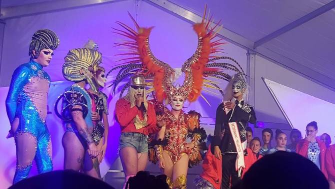 Grimasira Maeva, una de las drag que participó en esta segunda edición, y también en la anterior, subió al escenario con sus descomunales plataformas y su sensual vestimenta dispuesta a atrapar a los espectadores, con los que interactuó. Esta seductora reinona se ha propuesto consolidar la gala drag de El Llanito y lo está consiguiendo. El éxito cosechado este año lo confirma.