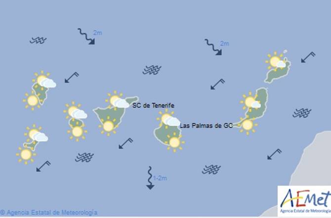 Temperaturas con pocos cambios o en ligero ascenso, más acusado en el sur de la isla, situándose entre 23 y 16 grados centígrados.