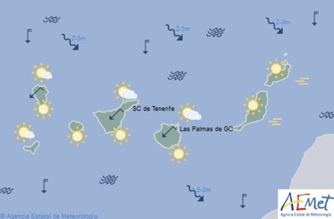 La predicción meteorológica para este miércoles en La Palma apunta a la existencia de cielos poco nubosos a despejados, con algún intervalo de nubes bajas en el litoral norte durante la madrugada y últimas horas.