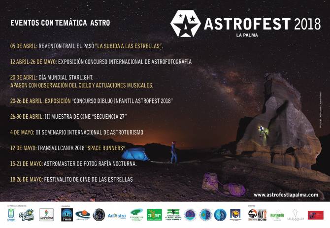 La celebración del Festivalito Festival de Cine de las Estrellas, de la popular prueba deportiva de trail running, Transvulcania, y del Astromaster de fotografía nocturna, así como la exposición del Concurso Internacional de Astrofotografía del Cabildo, varias charlas divulgativas, proyecciones para escolares, conciertos, y el III Seminario Internacional de Astroturismo forman parte de la programación de Astrofest que se desarrollará próximamente.