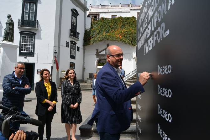 El montaje invita a los vecinos y visitantes de La Palma a expresar sus deseos en un gran cubo de pizarra.