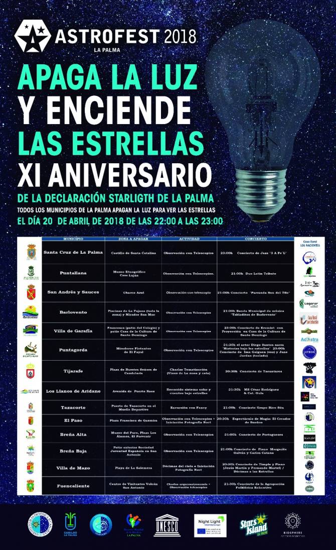 A partir de las 22:00, bajo el lema “Apaga la luz y enciende las estrellas”, se llevará a cabo un apagón simultaneo en toda la Isla, que tendrá una hora de duración.