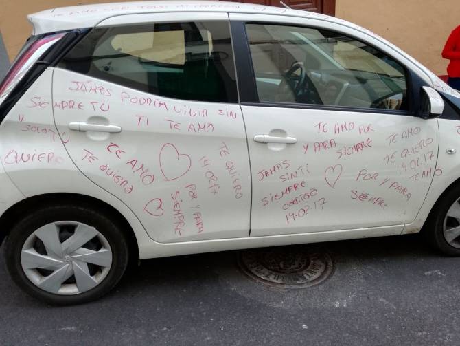Esta es la sorpresas que se llevo el conductor de este vehiculo en la calle Pedro Poggio de Santa Cruz de La Palma.