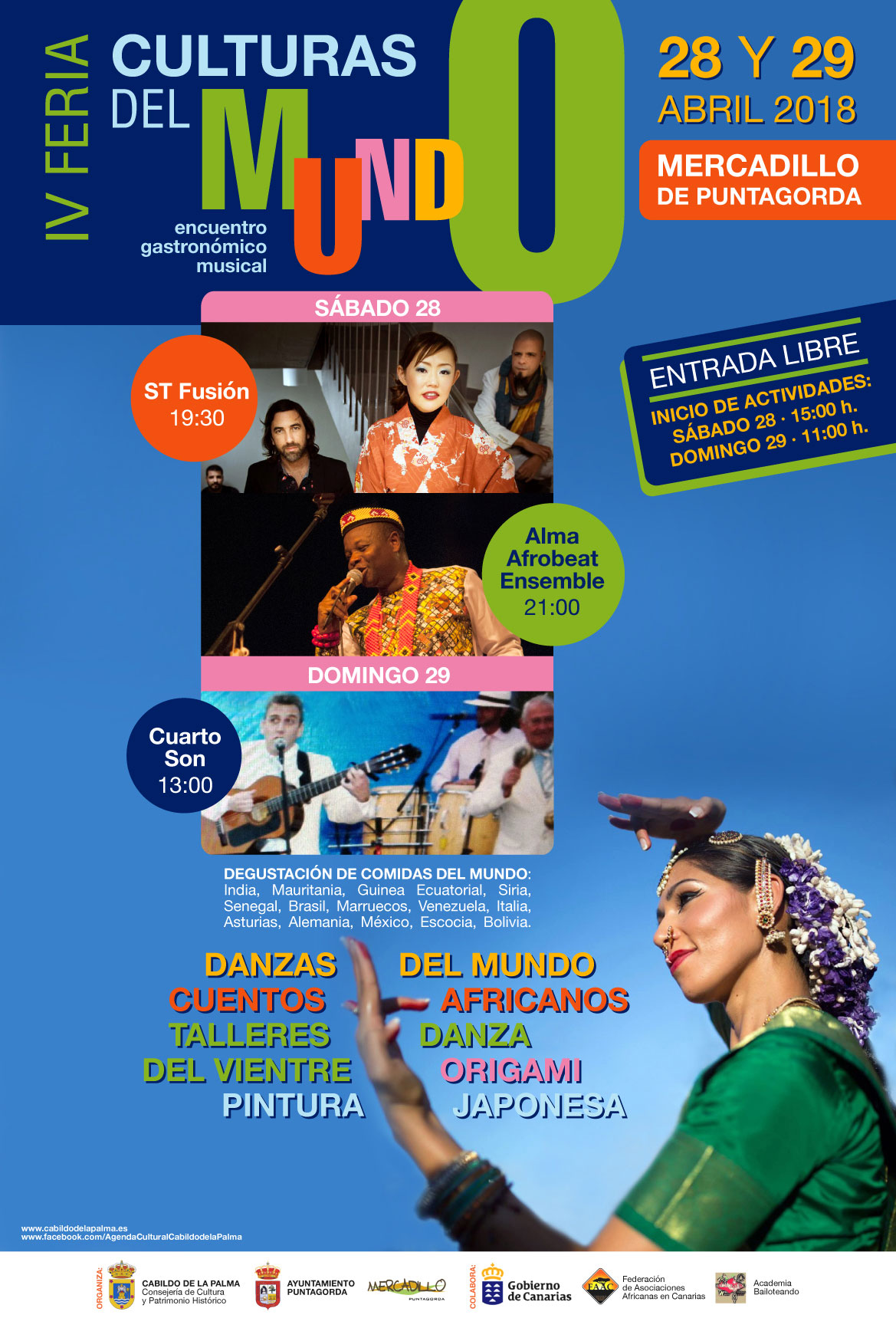 Tradiciones japonesas como el ‘Sumi-E’ o el Origami, una exhibición de danza tradicional hindú de 6.000 años de antigüedad o una propuesta de música fusión afrobeat forman parte del programa de esta feria que vuelve a celebrarse en el Mercadillo del Agricultor de Puntagorda.