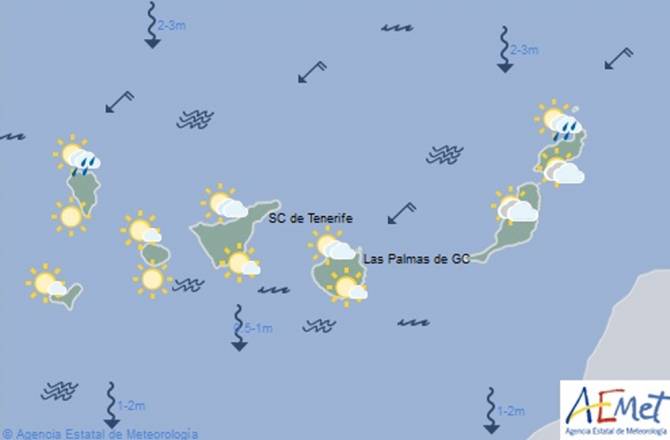 Viento del nordeste, más intenso en vertientes noroeste y sureste. Brisas en costa suroeste.