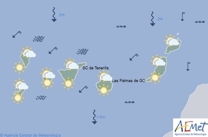 Viento del nordeste, más intenso en vertientes noroeste y sureste principalmente por la tarde. Brisas en costa suroeste.