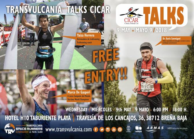Las Transvulcania Talks Cicar son pequeñas charlas dinámicas, de no más de 20 minutos de duración para tratar de captar toda la atención de los asistentes, y que están realizadas por ponentes con experiencia en temas relativos a las carreras de montaña tales como la saluda, la alimentación, la superación de los límites o el entrenamiento físico y mental. Van dirigidas a los amantes de la disciplina de montaña y también al público en general así que la asistencia está abierta para cualquier persona que esté interesada independientemente de que se haya inscrito o no en alguna modalidad de la Transvulcania Naviera Armas.