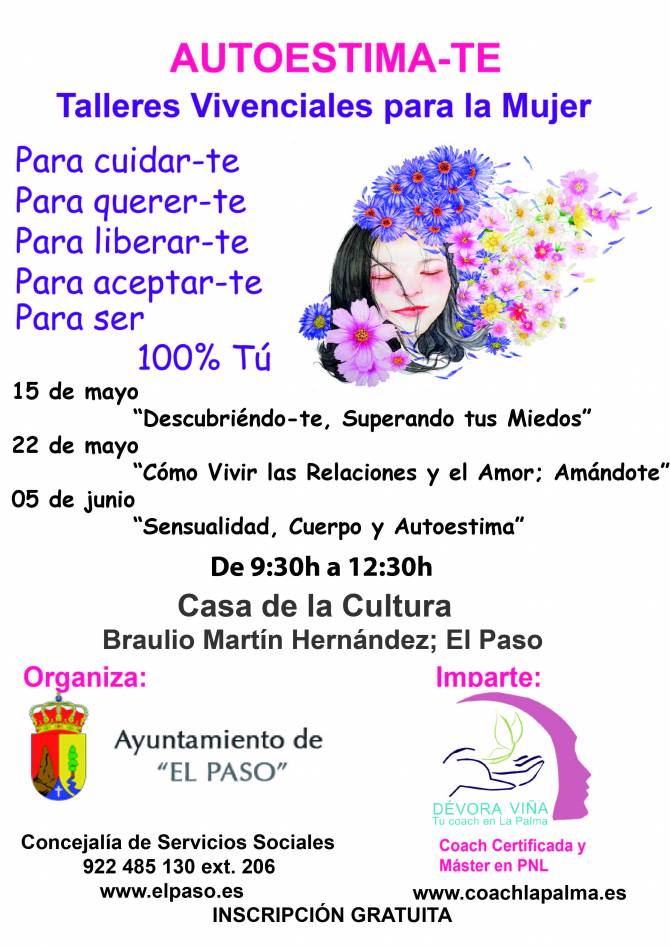 La casa de la cultura Braulio Martin de El Paso acoge los próximos día 15 y 22 de mayo y el 5 de junio, desde las 9:30 horas a las 12:30 horas, el taller para mujeres destinado a "aprender a cuidarse, quererse, liberarse y aceptarse, para ser 100% Tú".