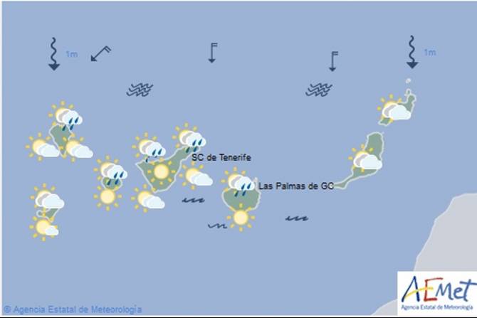 En el resto, nuboso, abriéndose claros en los litorales este y suroeste. Probabilidad de lluvias débiles ocasionales en el norte, principalmente en el interior.