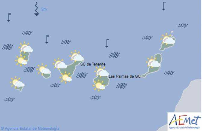 La predicción meteorológica para este lunes en la isla de La Palma apunta a la existencia del cielo nuboso en el norte y este por debajo de unos 1.400 metros por la mañana, abriendo amplios claros en horas centrales, y poco nuboso o despejado en el resto, con nubosidad de evolución en el sur e interior a partir de mediodía.