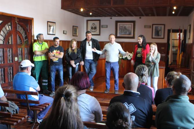 El alcalde de El Paso, Sergio Rodríguez, durante el encuentro que el grupo de gobierno mantuvo con los nuevos trabajadores les pidió que "se comprometan a realizar su labor con responsabilidad y dando lo mejor de sí mismos, en un año marcado por las fiestas trienales que necesitan que todos arrimemos el hombro”. Añadió que “este plan de empleo con fondos del FDCAN cumple una importante función social al permitir cierta estabilidad a personas que tienen un difícil acceso al mercado laboral”.