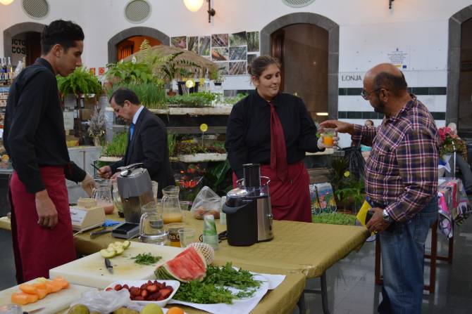 El Ayuntamiento de Santa Cruz de La Palma continúa celebrando la Semana de La Recova con actividades de gastronomía y degustación para promocionar el consumo de productos locales, como la celebrada este jueves en la que los alumnos del primer ciclo de formación básica de Cocina y Restauración del IES Virgen de Las Nieves han realizado una muestra de jugos y batidos de frutas (smoothies).