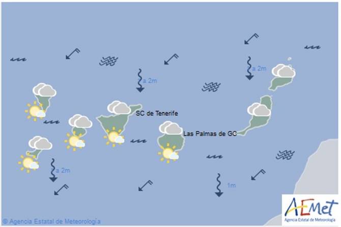 En el resto, poco nuboso o despejado. No se descarta alguna lluvia débil y ocasional en medianías del nordeste a primeras y últimas horas.