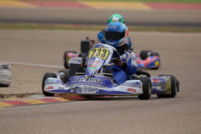 Las dos mangas de carrera, programadas a 15 vueltas cada una, no fueron fáciles, pero sí que demostraron su tenacidad como piloto. Con la salida lanzada, y al ser tercero en la parrilla, Santi Jr. se encontraba justo a espaldas del ‘poleman’, el campeón nacional portugués; una acción controvertida –frenó en brusco- en plena formación para la salida propició una serie de toques en cadena que acabó con un eje trasero doblado para el piloto palmero. Cayendo a las últimas posiciones volvió a tirar de casta para remontar. “No estaba acostumbrado a la reacción del kart, iba dando botes continuamente. Tuve que adaptarme a esa situación, pasé a frenar antes y traté de ser más fino con el volante”, por lo que pudo recuperar posiciones hasta ser finalmente sexto.