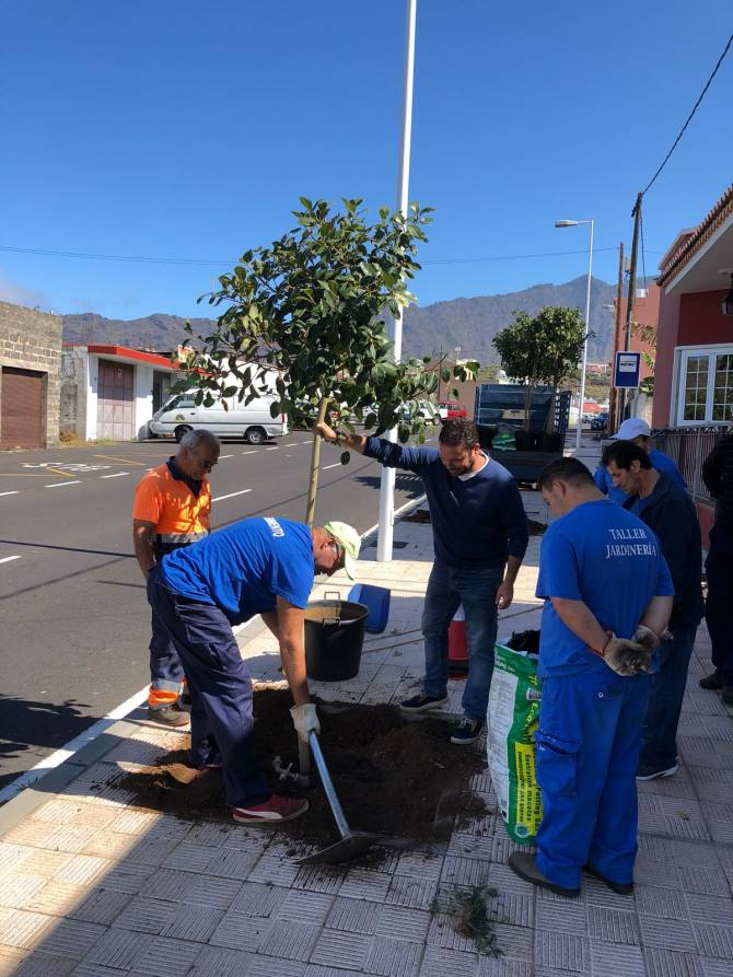 Las concejalías de Urbanismo, Medio Ambiente y Atención a la Ciudadanía del Ayuntamiento de Los Llanos de Aridane han aunado esfuerzos para conmemorar hoy, día 5 de junio, el Día Mundial del Medio Ambiente en el municipio. Con este motivo y en estrecha colaboración con el alumnado del Taller de Jardinería del Centro Ocupacional Taburiente, los operarios municipales han plantado cerca de una decena de ejemplares de ficus microcarpa, concretamente en la carretera de Puerto Naos a la altura del cruce con Las Rosas.