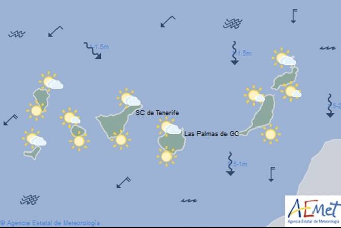 Viento del nordeste flojo a moderado, más intenso en costas sureste y punta noroeste por la tarde, cuando las rachas podrían alcanzar ocasionalmente los 60 Km/h.