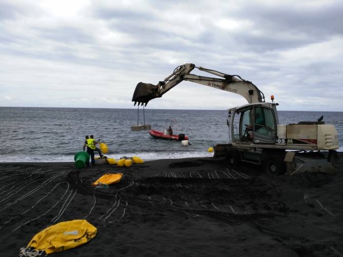 El Ayuntamiento de Santa Cruz de La Palma acomete durante este fin de semana los trabajos de balizamiento de la playa capitalina para señalizar y delimitar el área de acceso al mar para la práctica de deportes náuticos.