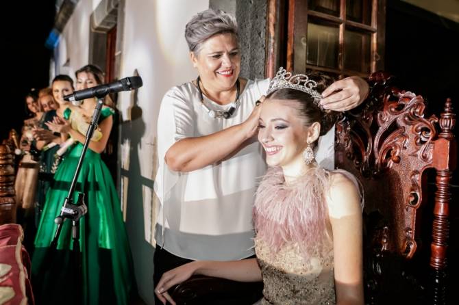 Minutos después, en el balcón de las casas consistoriales, la regidora municipal le imponía a Claudia Lorenzo la corona que marca el comienzo de su reinado. Todo ello bajo el espectacular y colorido juego de luces que se proyectaban sobre la fachada del Ayuntamiento y al son que marcaba la Banda Municipal de Música, que con sus diferentes interpretaciones marcó el ritmo de una noche emblemática para las fiestas patronales.
