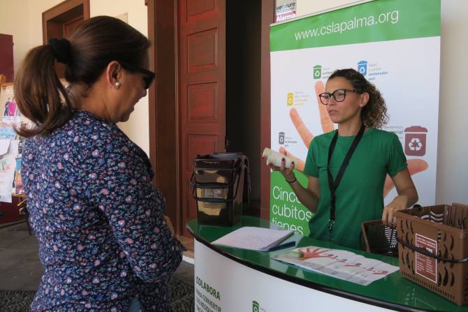 Más de 340 bagañetes se han acercado durante esta semana al estand itinerante habilitado por el Consorcio de Servicios, en el marco de la campaña Cinco cubitos tienes ahora, en el atrio del Ayuntamiento de Villa y Puerto de Tazacorte para entregar de forma gratuita a quienes lo soliciten su kit de separación, compuesto por un cubo marrón y bolsas compostables.