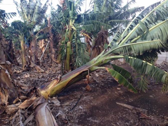 En el caso del viento, las fuertes rachas sufridas a finales del primer trimestre causaron una pérdida de más de 14,5 millones de kilogramos de plátanos en unas 3.500 hectáreas de terreno de las 9.000 que comprende el cultivo. Además, las plataneras afectadas, se han visto perjudicadas también a posteriori por una ralentización de su desarrollo y por tanto, de su capacidad productiva.