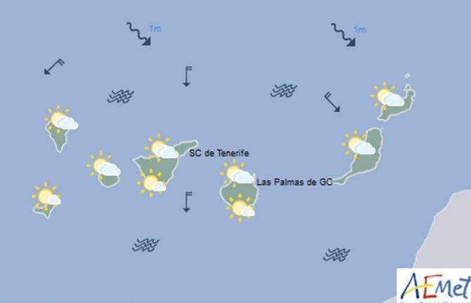 La previsión meteorológica para este viernes en La Palma apunta a la existencia de cielos despejados en zonas altas, por encima de unos 1.000 metros. En franjas litorales, intervalos nubosos, alternando con amplios claros, sobre todo en el oeste.
