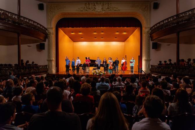 La presencia de público joven vuelve a ser una de las marcas de la casa, la vocación por hacer llegar la música clásica a toda la familia desde edades tempranas. Si esta mañana el público infantil junto a sus padres llenaba la platea y varios palcos del Teatro Circo de Marte, también el pasado viernes, numerosos jóvenes disfrutaron del recital del pianistas Joaquín Achúcarro con quien tuvieron la ocasión de fotografiarse.