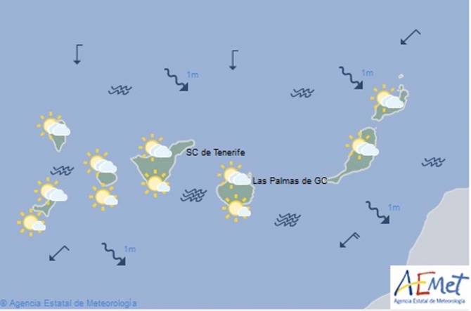 La previsión meteorológica para este domingo en La Palma apunta a que en el norte y nordeste habrá intervalos nubosos durante la primera mitad del día que tenderán a cielos poco nubosos por la tarde.