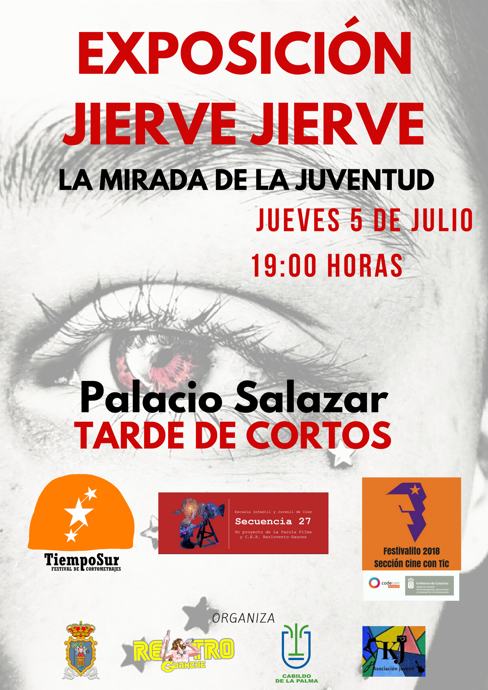 La exposición de arte juvenil Jierve Jierve cierra este viernes sus puertas en la Casa Principal de Salazar de Santa Cruz de La Palma, después de dos semanas en las que se han dado cita fotografía, música, poesía, cine y arte, en un avance de lo que será el festival juvenil de carácter multidisciplinar cuya tercera edición se celebrará el próximo 16 de agosto en la plaza de España.