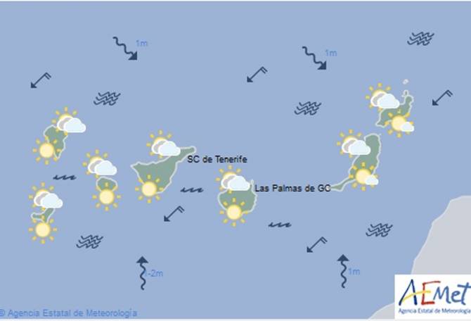 Temperaturas en descenso, más acusado en las máximas de medianías y zonas altas, situándose entre 25 y 19 grados centígrados.