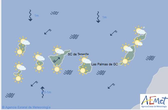La previsión meteorológica para este sábado en La Palma apunta a la existencia de intervalos nubosos en el norte, por debajo de unos 1.000 metros, tendiendo a poco nuboso por la tarde. En el resto, poco nuboso o despejado.